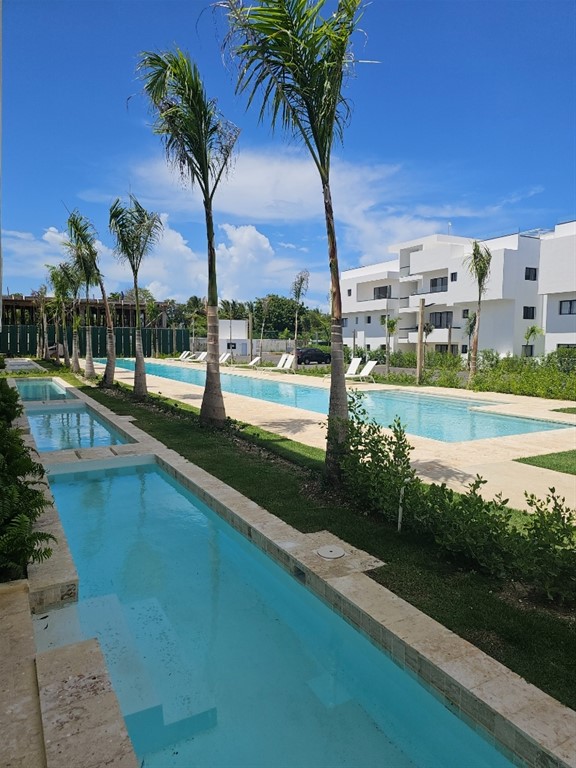 APARTAMENTO A ESTRENAR EN WHITE SANDS, PUNTA CANA. Equilibrio perfecto entre comodidad y lujo. Además, disfruta de un acceso exclusivo a la hermosa playa natural Arena Gorda, próximo a los hoteles más emblemáticos de la zona como Princess, Ocean Blue, Paradisus Punta Cana, Iberostar y Palladium. A 4 minutos de la playa, A 15 minutos de Dowtown Punta Cana, A 25 minutos del aeropuerto de Punta Cana. CARACTERITICAS DEL APARTAMENTO 83.00m2 más parqueo 2do nivel 2 habitaciones 2 baños Balcón Sala Comedor Cocina Área de lavado 1 parqueo Picuzzi Privado. 3 aires acondicionados instalados CARACTERISTICAS DEL RESIDENCIAL Acceso exclusivo a Playa Natural Arena Gorda a 4 minutos, con servicio de trasporte cada hora . Una cancha de tennis Dos Canchas de Padel Piscina Area infantil Seguridad 24/7 Airbnb Frendly Residencial Cerrado Planta full Gas común TERMINACIONES Puertas en madera preciosa Porcelanato Cocina modular, tope de cuarzo. Ventanas de aluminio Grifería en acero inoxidable Mampara de cristal en duchas INVERSIÓN: US$ 166,500.00 Mantenimiento : US$100.0
