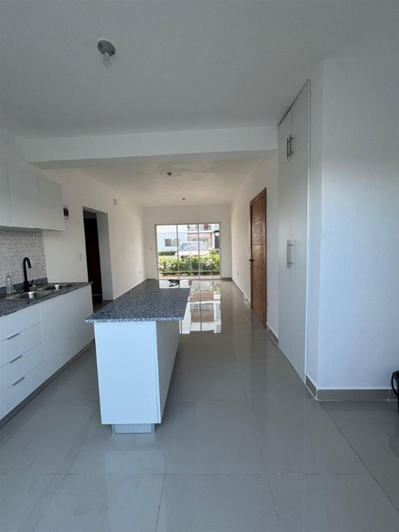 Se vende acogedor apartamento, solo 1 año de construcción Ubicado en la zona de Domingo Maíz en el residecial Norah Beach, 3 min de Almacenes Unidos en vehículo y 12 min del aeropuerto de Punta Cana. Condominio cerrado con piscina común, gym y área social Amenidades: * Primer nivel * 2 habitaciones * 2 baños * Sala-comedor * Cocina lineal con isla. * Terraza frontal, con vista al parqueo. * Patio posterior, privado. 73mts2 de construcción 25mts2 de patio. 1 Parqueo asignado. Precio: US$110,000 precio negociables US$115 mantenimiento Incluye: 3 aires acondicionado y calentador.