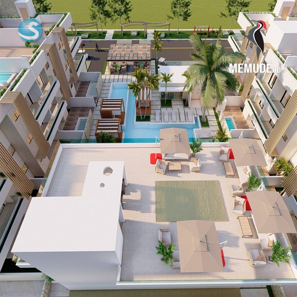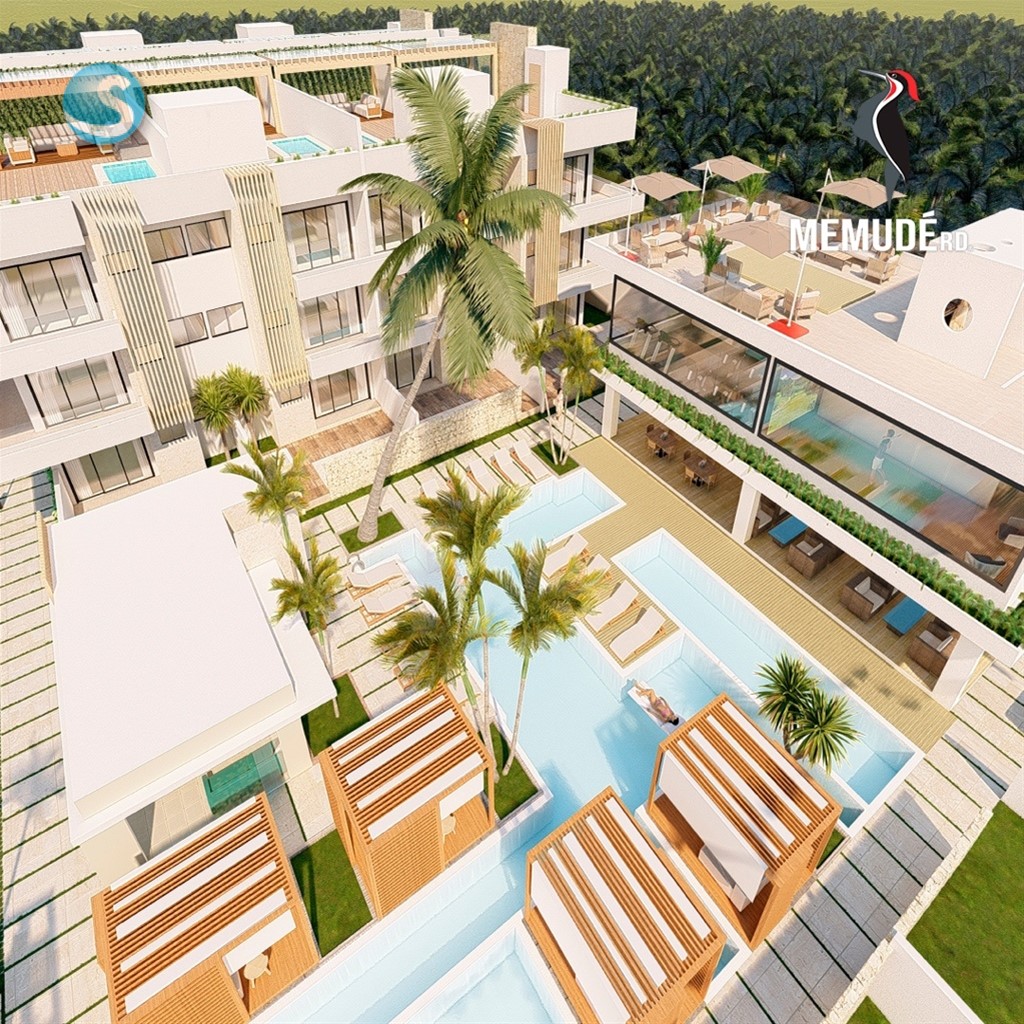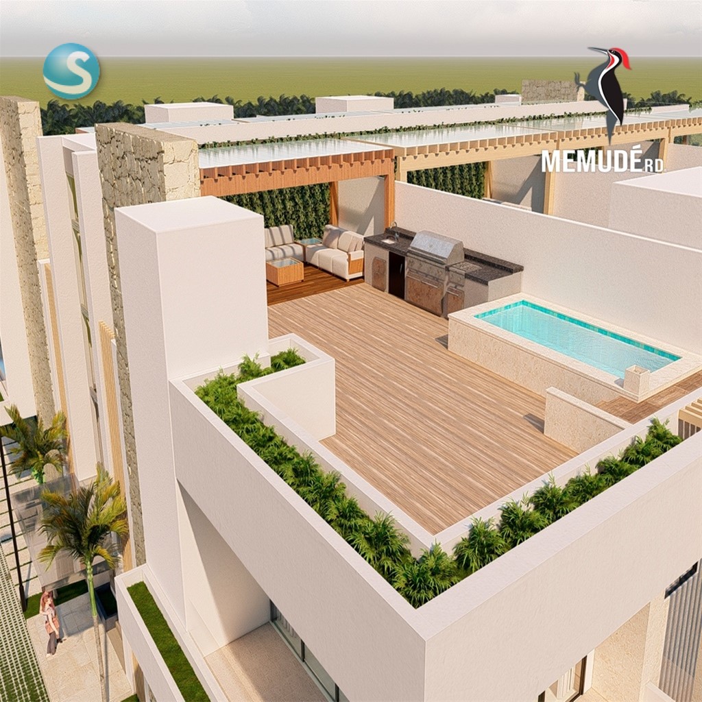 Punta Cana El placer de vivir en armonía A solo minutos de: Supermercados Restaurantes Bancos Tiendas Discotecas Parques acuáticos Playas Aeropuerto Internacional de Punta Cana Amenidades Hermoso Jardín Sala de Golf Virtual Gym Equipado Área de juegos Amplia piscina y jacuzzi Rooftop Privado PLAN DE PAGO Bloqueo de unidad US$1,000 Reserva 20% Cuotas 30% Contraentrega 50% Entrega Diciembre 2025 011