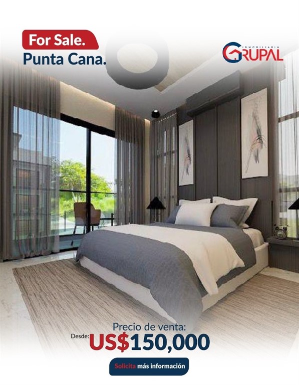 Apartamento en moderno proyecto – Bávaro, Punta Cana Apartamento ideal para vivir o invertir en una de las zonas más demandadas: • 2 habitaciones • Baños • Sala y comedor • Cocina • Patio • Picuzzi Amenidades del residencial: • Piscina • Gimnasio • Proyecto cerrado • Seguridad Precio de venta: US$150,000