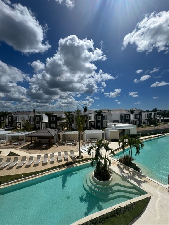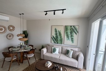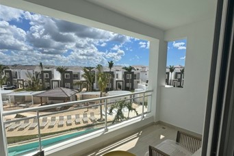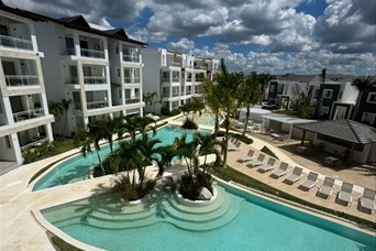 Apartamento Venta Bayahíbe Calle San Rafael Condominio Garden Breeze apto IBE302 Bayahibe piso 3 con 58.20 metros, 1 habitación, 1 baños, sala, comedor, amplio balcon, nuevo a estrenar, piscina y con acceso a la playa 8 minutos caminando US$155,000 incluye mobiliario Bayahibe Codigo h.u