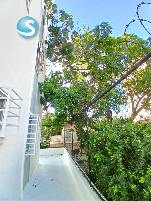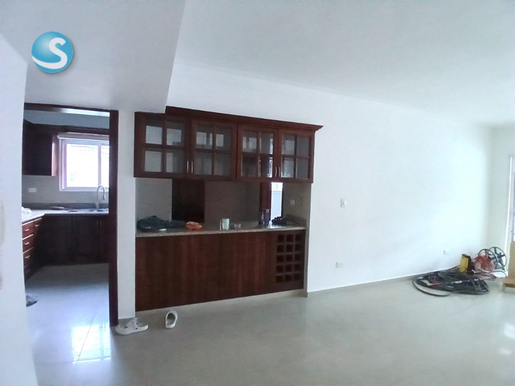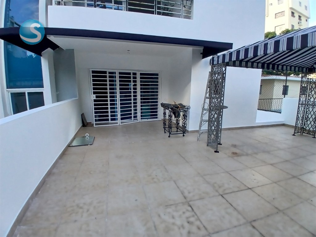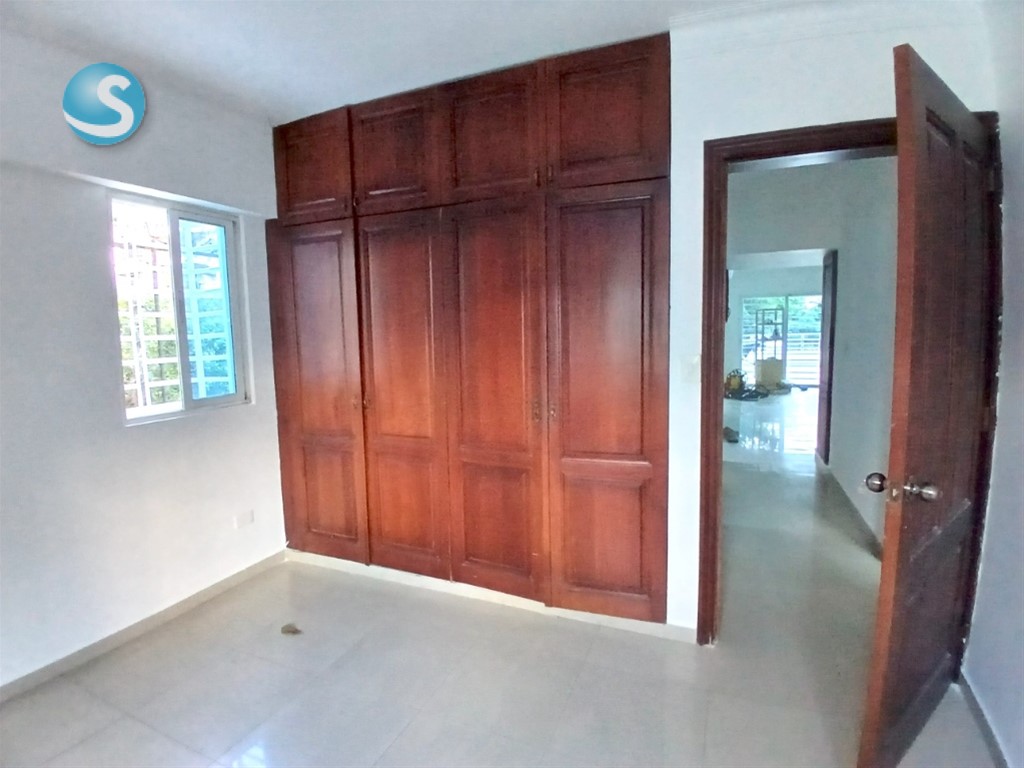Cómodo apartamento. 2do. piso con amplia terraza. 120 metros de apartamento, mas 30 metros de terraza, y 24 metros de dos parqueos techados paralelos. El apartamento consta de 2 amplios dormitorios, el dormitorio principal con walking closets con sus divisiones y baño dentro, el dormitorio secundario con closets y baño en el pasillo, ambos con pre-instalación de aire acondicionado, closet de ropa blanca, cuarto de servicio con su baño, e hierros en todo el apartamento. Amplia sala-comedor, amplia cocina con desayunador, área de lavado con su lavadero e instalación para lavadora - secadora, calentador de gas, y amplia terraza. Muy ventilado, iluminado y fresco, con amplios ventanales en todo el apartamento. Tiene ademas un patinillo que bordea todo el apartamento, lo que lo hace mas ventilado e iluminado. El edificio consta de pequeño lobby, ascensor, planta full, gas común, portón eléctrico. La ubicación es céntrica cercana a Supermercados, plazas comerciales, parque Mirador Sur, Colegios, farmacias, entre otros. Esta ubicado entre la avenida Nunez de Cáceres y la calle Carmen Mendoza de Cornielle, y entre las avenidas 27 de Febrero y Romulo Betancourt.