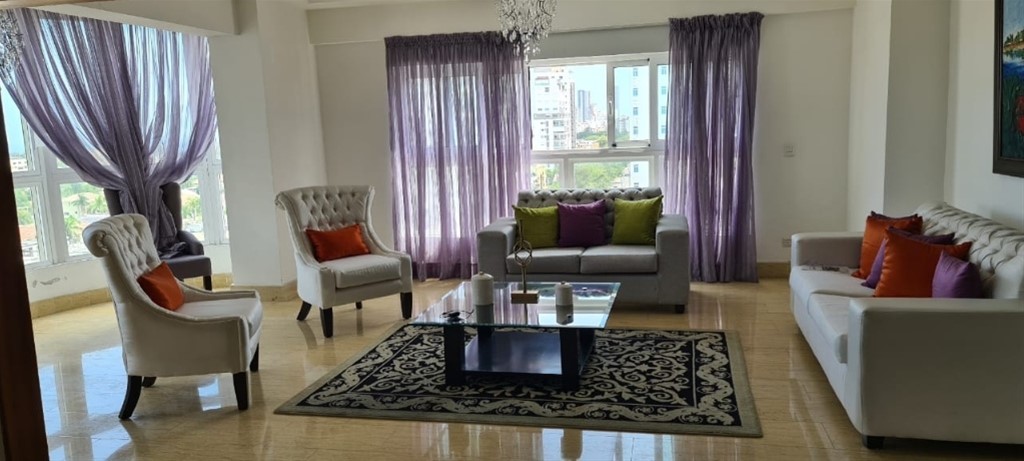 Categoría: Apartamento Amueblado con vista al mar. Ubicación: Bella Vista Metraje: 270 mtr2 Piso: 9 Habitaciónes: 3 Baños: 3.5 * Aire acondicionado inverter en todas las habitaciones. * Family room con aire inverter. * Estudio con aire inverter. exclusivamente. * Antesala. * 2 Salas * Comedor * Cocina moderna * Área de lavado * Closet para ropa blanca. * Habitación de servicio con su baño * Lobby amueblado. * Gimnasio. * Salón de evento. * Area de juegos para niños con: casita club trampolín y columpio. *85 m² de área social con bar climatizada y amueblada. * Area de recreación para adultos con: cancha de uso múltiples, para tenis, cancha de basketball y bar equipado con BBQ y Freezer. * 3 ascensores * Dos Plantas eléctricas full. * Cisterna con dos bombas de agua. * Gas común. * Portones eléctricos a control remoto. * Escalera de emergencia. Precio Alquiler Amueblado US$ 2,500 Pablo Marrero Marrero Luxury Real Estate cel:809-710-2700 Email: [email protected] Instagram: @pablo.marreroluxury www.marreroluxury.
