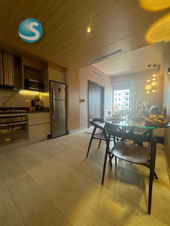 Hermoso apartamento totalmente Amueblado Descripción 50 Mts Sala comedor Cocina 1/2 baño visita Balcón 1 habitación amplia Con walking clóset y baño completo Finamente amueblado y decorado Áreas sociales Bar Piscina Gimnasio Terraza techada y destechada Area BBQ Acceso al restaurante de la torre Esas son las amenidades compartidas. tienen un restaurante arriba privado que los huéspedes visitan como cualquier otro restaurante y también pueden ordenar room service. En el primer piso pusieron un cigar bar privado también que lo pueden visitar como cualquier otro cliente. Precio U$198000