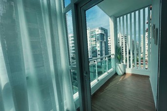 Apartamento de 1 habitación, walking clóset, cocina y sala con balcón en alquiler! Bella Vista Sur?? US$1,400 5to piso Área Social: Piscina vista al mar?? Gimnasio Salón para eventos Baños 2 ascensores Lobby doble altura amueblado y climatizado Más información: ??809-659-4141