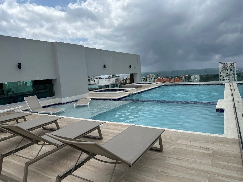 Apartamento en alquiler US$1300 Man Inc. 93.50 mt2 de construcción Dos (2) habitaciones Dos (2) baños ½ baño para visita Sala Comedor Balcón Cocina modular Área de lavado Dos (2) parqueos uno atrás del otro ÁREAS SOCIALES ROOFTOP Piscina Jacuzzi Gimnasio Salón Multiuso Salón de Juegos para niños Terraza techada Terraza destechada Gaseo con bar integrado Área para BBQ Agente Inmobiliario Yonoris Gómez Cel.8298876866 Ofic.8095086099