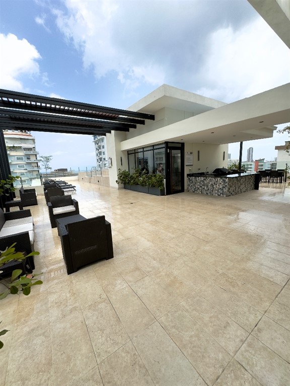 Moderno y bien estandarizada torre con excelentes calidades, y sismo resistente. Muy bien ubicado en Bella Vista entre las avenidas Sarasota y Rómulo Betancourt. La torre cuenta con: Hermoso y amplio lobby climatizado, gimnasio, salón de reuniones amueblado y climatizado, área infantil, amplia terraza destechada con mobiliario, BBQ y Kichinet, piscina y jacuzzy, dos medios baños, área de ducha. Dos ascensores, dos escaleras, sistema de seguridad con cámaras, sistema contra incendios. Dos plantas eléctricas (una full,) gas común, control de acceso. 3er nivel, 2 habitaciones, 2.5 baños, balcón, cocina desayunador, área de lavado, cuarto de servicio. 116.93 mts2 netos + 25.59 mts2 de 2 parqueos techados. Excelente terminación !