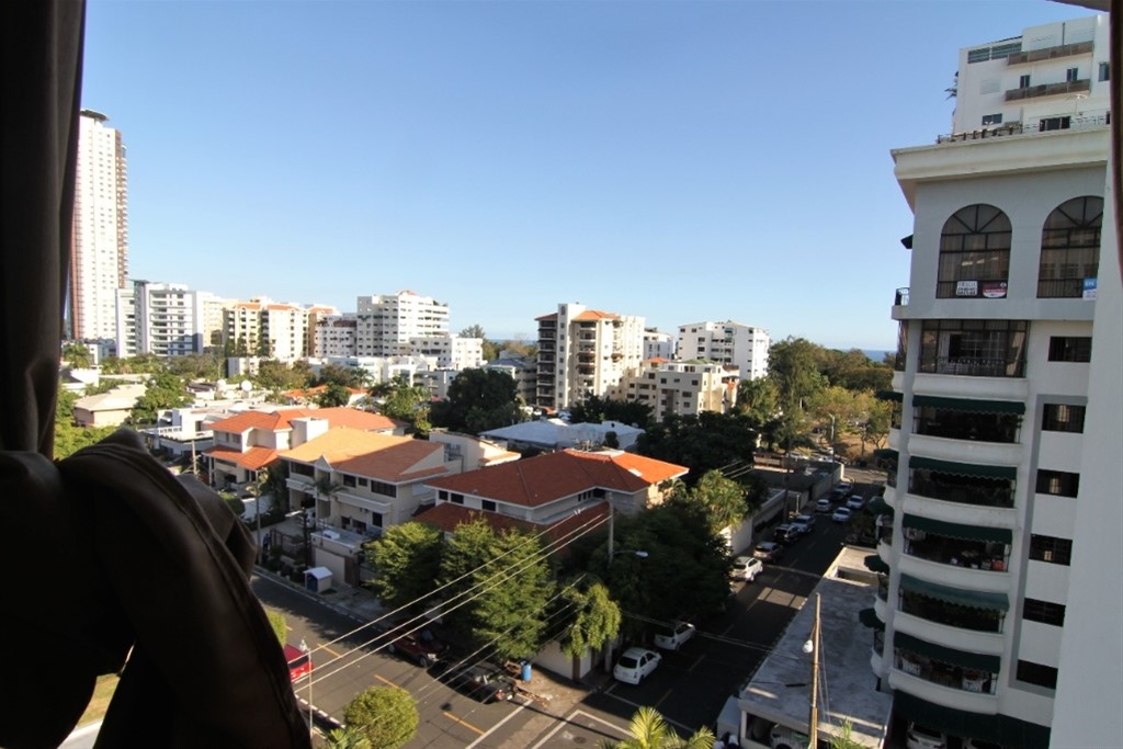 Espacioso apartamento en Bella Vista, de 3 habitaciones bien iluminadas, 2 baños y un espacio de estacionamiento. Ubicado en una de las zonas más exclusivas de Bella Vista, ideal para quienes buscan comodidad y estilo. La cercanía a centros comerciales, restaurantes y parques lo convierte en una opción perfecta para familias y profesionales. FULL amueblado con vista al mar, en residencial cerrado con control de acceso. Cómodo, Amplio, Fresco y de fácil acceso en zona tranquila Descripción del Apartamento: • 3 habitaciones, la principal con su baño y Walkin Closet • Aire acondicionado • 2 baños • Sala – comedor y Baño de visita • Estar Familiar y recibidor • Cocina con desayunador • Área de lavado y Cuarto de servicio con su baño • Balcón integrado a la sala Características del Residencial • 2 ascensores • Portón eléctrico y Control de acceso • Generador eléctrico full • Intercom y vigilancia 24 Horas • Parqueo Lugares de interés • Avenida Anacaona • Parque Mirador Sur • Cadena de hoteles y negocios • Zona del Malecón • Seminario Pontificio Santo Tomás de Aquino • Downtown Center • Carol Morgan School
