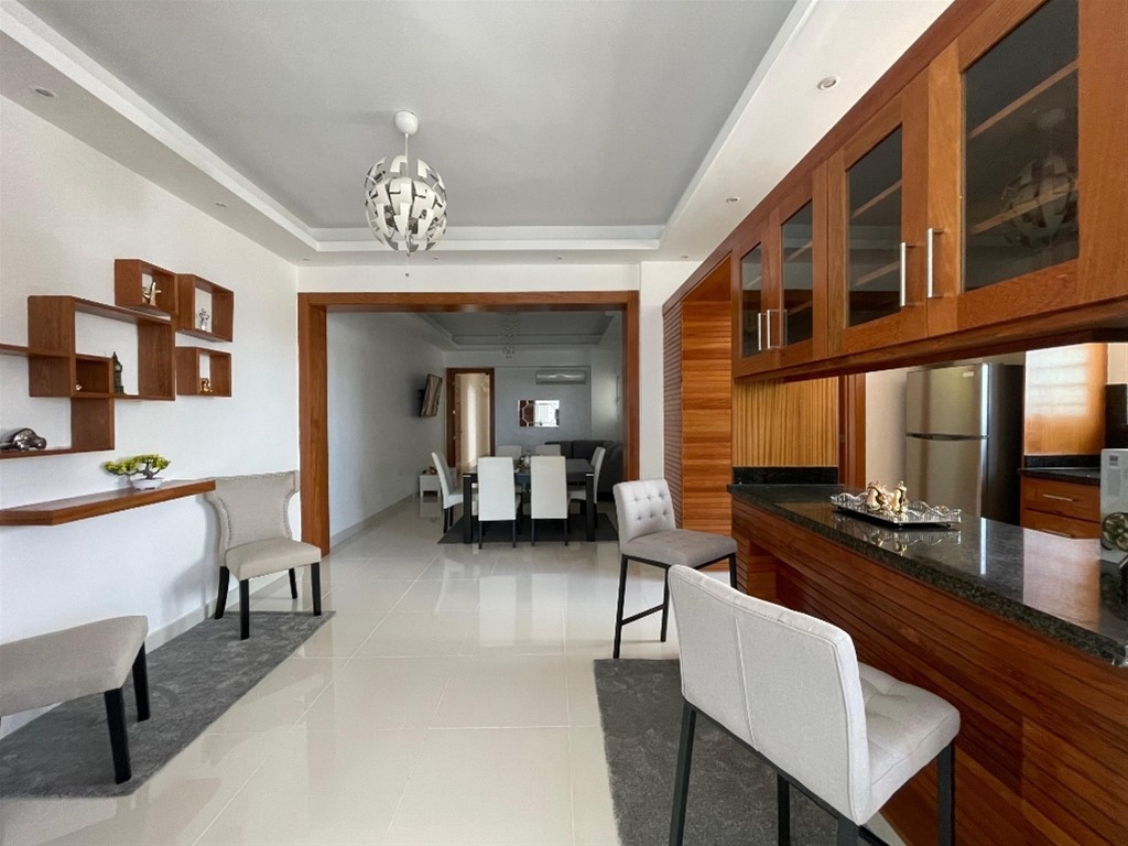 Agente Mayka Estrella Contacto: 849-856-5217 Propiedad: Apartamento Sector: Bella vista Construcción 213 MT2 Piso Alto / vista al Mar Precio de Alquiler: USD$ 1,900(Mantenimiento Incluido) Vive con estilo y comodidad en este amplio apartamento de 213 m², ubicado en Bella Vista Sur, en la codiciada primera línea de la Avenida Sarasota, con acceso inmediato a lo mejor de la ciudad. Distribución interna: • 3 habitaciones, cada una con su baño • 3.5 baños en total • Sala y comedor con excelente ventilación • Cocina moderna • Estar familiar acogedor • 2 parqueos techados Amenidades del área social: • Terraza con vista • Área de bar para reuniones y eventos • Área de juegos para niños