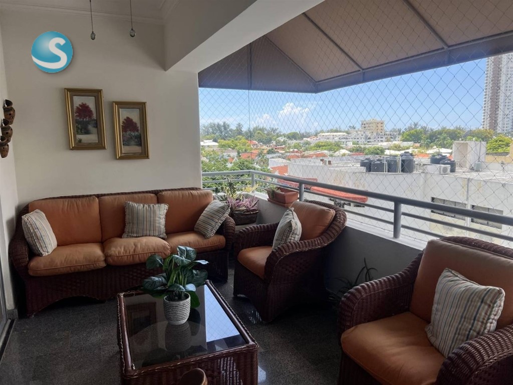 Agente Mayka Estrella Contacto:849 856 5217 Propiedad: Apartamento Sector: Bella Vista Sur Parqueos: 2 PRECIO DE venta Us 345,000 Vive con estilo y comodidad en este espectacular apartamento en venta, ubicado en el exclusivo sector de Bella Vista Sur, una de las zonas más codiciadas de Santo Domingo. Su ubicación privilegiada, próxima al Parque Mirador Sur, ofrece un entorno tranquilo y seguro, con cercanía a colegios, supermercados, centros comerciales y restaurantes, ideal para disfrutar de una vida plena en familia. Con 222.62 m² de área total y 200 m² de construcción, este apartamento en 5to piso se distingue por sus amplios y luminosos espacios. Cuenta con elegante lobby, ascensor, recibidor, sala de estar, sala principal, comedor, 3 habitaciones con baño y vestidor, 3.5 baños, amplio balcón, cocina, área de lavado, y habitación de servicio con baño. Además, dispone de 2 parqueos techados paralelos, planta eléctrica full, gas común, portón eléctrico, cámaras de vigilancia y seguridad 24/7. Un hogar que combina elegancia, amplitud y una ubicación inmejorable, ideal para quienes valoran el confort y la seguridad en un ambiente residencial exclusivo.