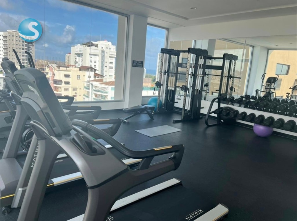 Excelente apto en venta y alquiler en Bella Vista Sur 1 habitación 1,5 baño 70mt 2do piso Sala comedor Ascensor 1 parqueo Cocina Área lavado Balcón Planta full Gas común Lobby Piscina Gimnasio Área común amueblada Sport Bar con terraza Bike Club con renta de bicicletas Citas Ana Livia 809-440-0223