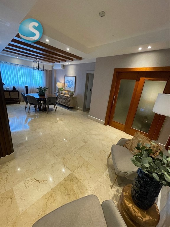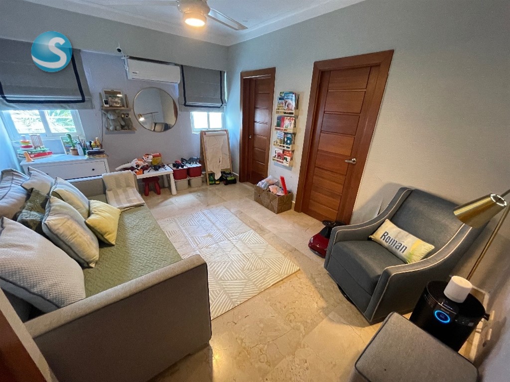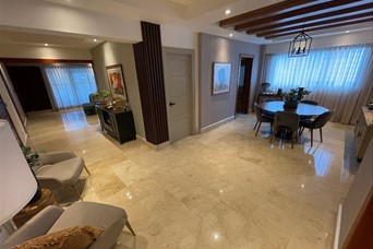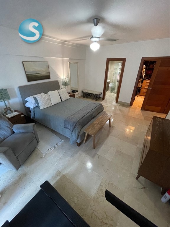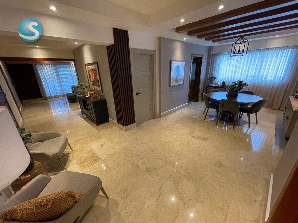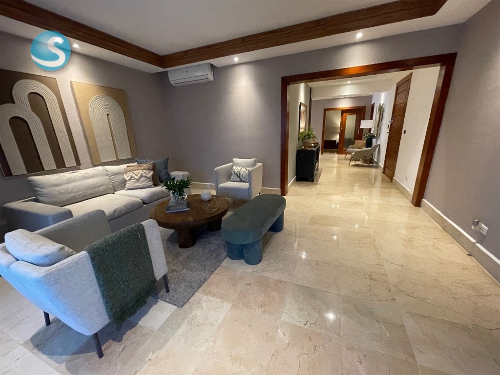 ??*BELLA VISTA SUR* ?? *DESCRIPCION GENERAL:* Elegante, Majestuoso y Cómodo apartamento ubicado en el corazón de Bella Vista Sur. De finísima terminación y espacios muy difíciles de encontrar. La habitación principal es de ensueño, sin dejar atrás las habitaciones Secundarias. Todas las áreas en su mayoría cuentan con un excelente tamaño y distribución, haciendo que cada ambiente en este apartamento sea armonioso y elegante. ?? *DESCRIPCION DEL APARTAMENTO:* ??3er Nivel (2 x Piso) ??245 Metros ??3 Amplias Habitaciones con su baño y Walk In Closet Revestidos en Cedro (Hab. Principal con Balcón) ??3.5 Baños ??1/2 Baño de Visitas ??Recibidor a la salida del Ascensor ??Estar Recibidor ??Amplia Sala ??Comedor ??Estudio ??Amplio Balcón ??Cocina Cerrada ??Área de Lavado ??Cuarto de Servicio con Baño ??2 Parqueos Techados Paralelos ?? *TERMINACIONES:* ??Pisos en Mármol ??Puertas en Madera Roble y Caoba ?? En la Cocina Gabinetes en Caoba y el Tope en Granito Natural ??Techos con Fascias en Sheetrock Con Luces empotradas ?? *DESCRIPCION DE LA TORRE:* ??Lobby ??2 Ascensores (Con Opción a Bloqueo) ??Planta Eléctrica Full ??Cámaras de Seguridad ??Conserjería y Vigilancia 24/7 ??Circuito Cerrado ??Portón Eléctrico ?? Terraza Común con Vista al Mar. ??Salón de Eventos ??Área de BBQ ??Escalera de Emergencia ??Gas común y Agua incluido en el mantenimiento ??Año Construcción 2014 ??NO Airbnb ?? *PRECIO DE VENTA:* *US$ 375,000.00* ??*Mantenimiento:* *RD$ 13,000.00