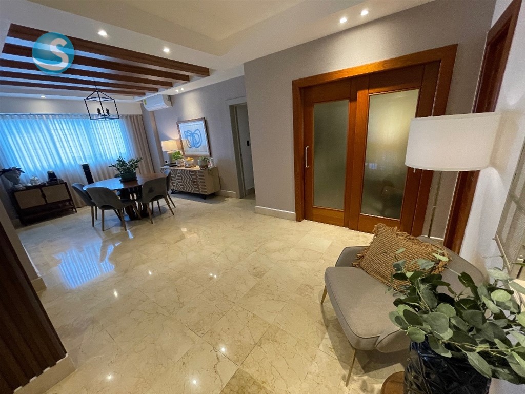 ??*BELLA VISTA SUR* ?? *DESCRIPCION GENERAL:* Elegante, Majestuoso y Cómodo apartamento ubicado en el corazón de Bella Vista Sur. De finísima terminación y espacios muy difíciles de encontrar. La habitación principal es de ensueño, sin dejar atrás las habitaciones Secundarias. Todas las áreas en su mayoría cuentan con un excelente tamaño y distribución, haciendo que cada ambiente en este apartamento sea armonioso y elegante. ?? *DESCRIPCION DEL APARTAMENTO:* ??3er Nivel (2 x Piso) ??245 Metros ??3 Amplias Habitaciones con su baño y Walk In Closet Revestidos en Cedro (Hab. Principal con Balcón) ??3.5 Baños ??1/2 Baño de Visitas ??Recibidor a la salida del Ascensor ??Estar Recibidor ??Amplia Sala ??Comedor ??Estudio ??Amplio Balcón ??Cocina Cerrada ??Área de Lavado ??Cuarto de Servicio con Baño ??2 Parqueos Techados Paralelos ?? *TERMINACIONES:* ??Pisos en Mármol ??Puertas en Madera Roble y Caoba ?? En la Cocina Gabinetes en Caoba y el Tope en Granito Natural ??Techos con Fascias en Sheetrock Con Luces empotradas ?? *DESCRIPCION DE LA TORRE:* ??Lobby ??2 Ascensores (Con Opción a Bloqueo) ??Planta Eléctrica Full ??Cámaras de Seguridad ??Conserjería y Vigilancia 24/7 ??Circuito Cerrado ??Portón Eléctrico ?? Terraza Común con Vista al Mar. ??Salón de Eventos ??Área de BBQ ??Escalera de Emergencia ??Gas común y Agua incluido en el mantenimiento ??Año Construcción 2014 ??NO Airbnb ?? *PRECIO DE VENTA:* *US$ 375,000.00* ??*Mantenimiento:* *RD$ 13,000.00
