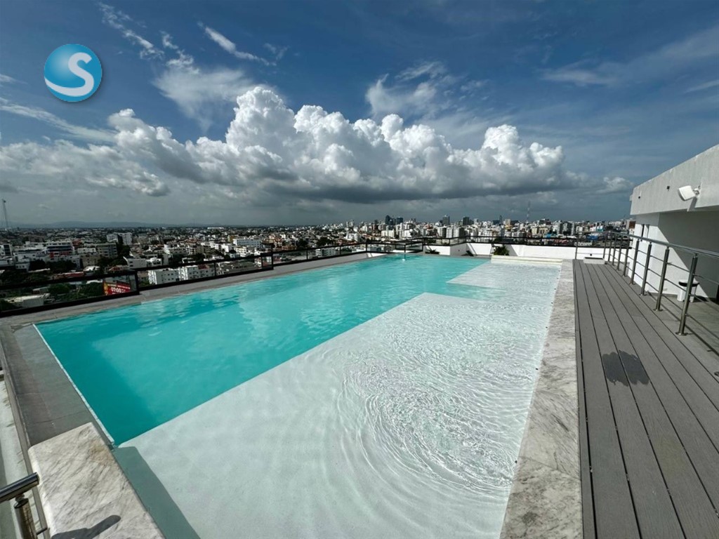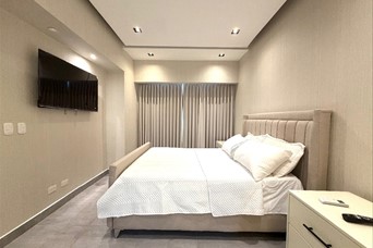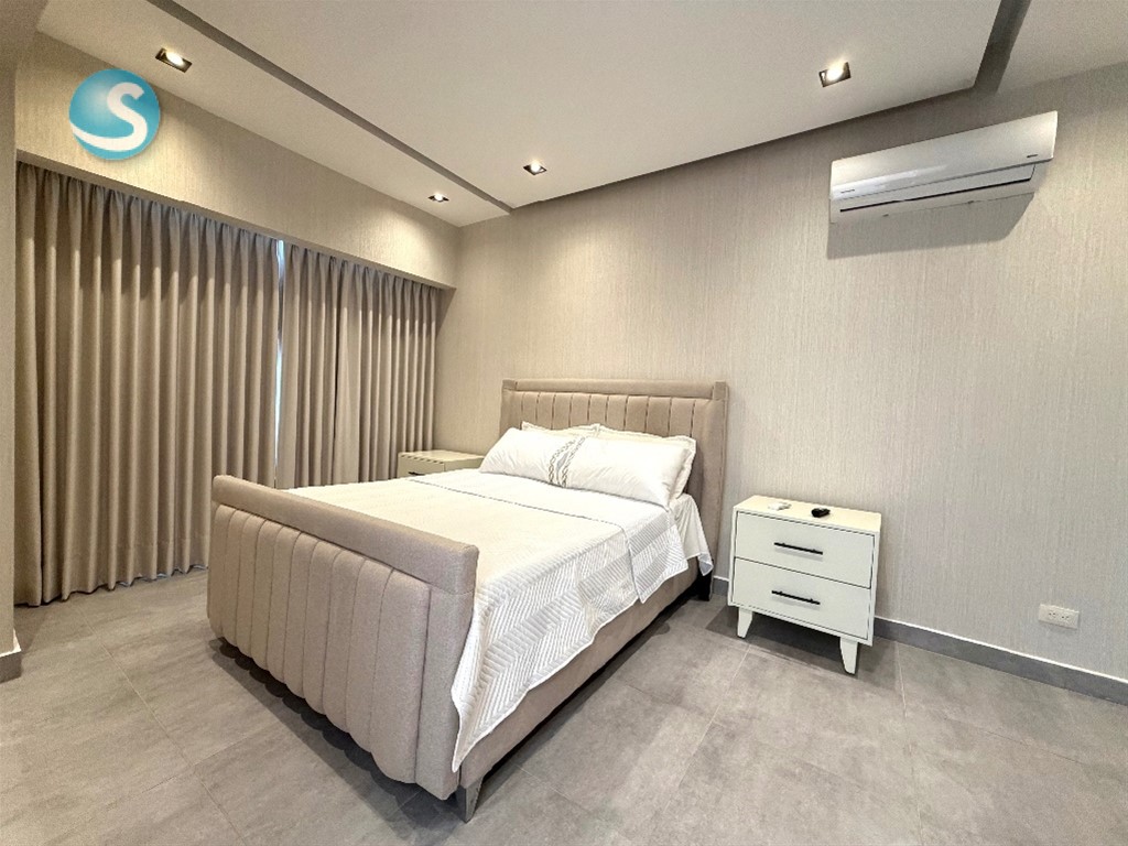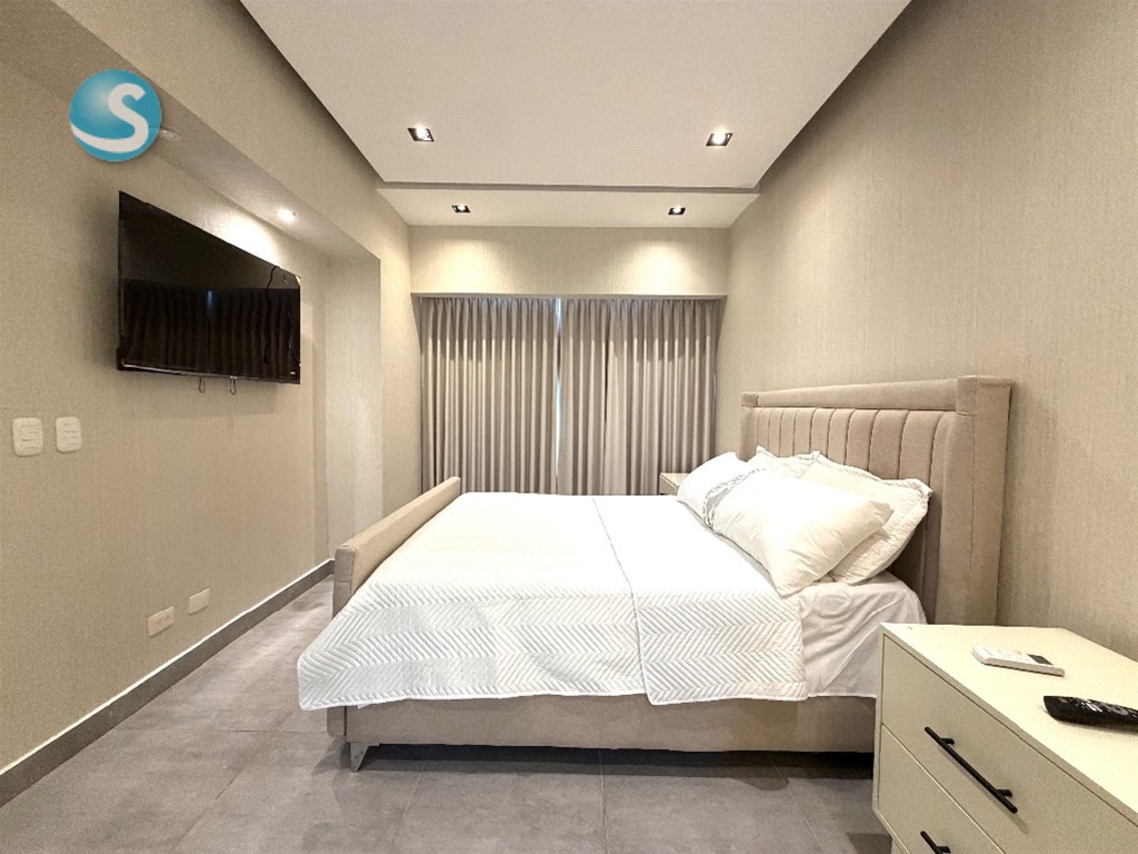 BELLA VISTA Moderno Apartamento en Elegante Torre con Impresionantes Áreas Sociales en el último nivel. ALQUILER AMUEBLADO US$1,100 1 habitación 1.5 baños Sala - Comedor Balcón Cocina con desayunador Área de lavado 1 parqueo Amenidades Dos piscinas Infinity Dos terrazas amuebladas Area de BBQ Gimnasio equipado Cine Salón Multiuso Área infantil Lujoso Lobby Amueblado Ascensores Planta Eléctrica Full