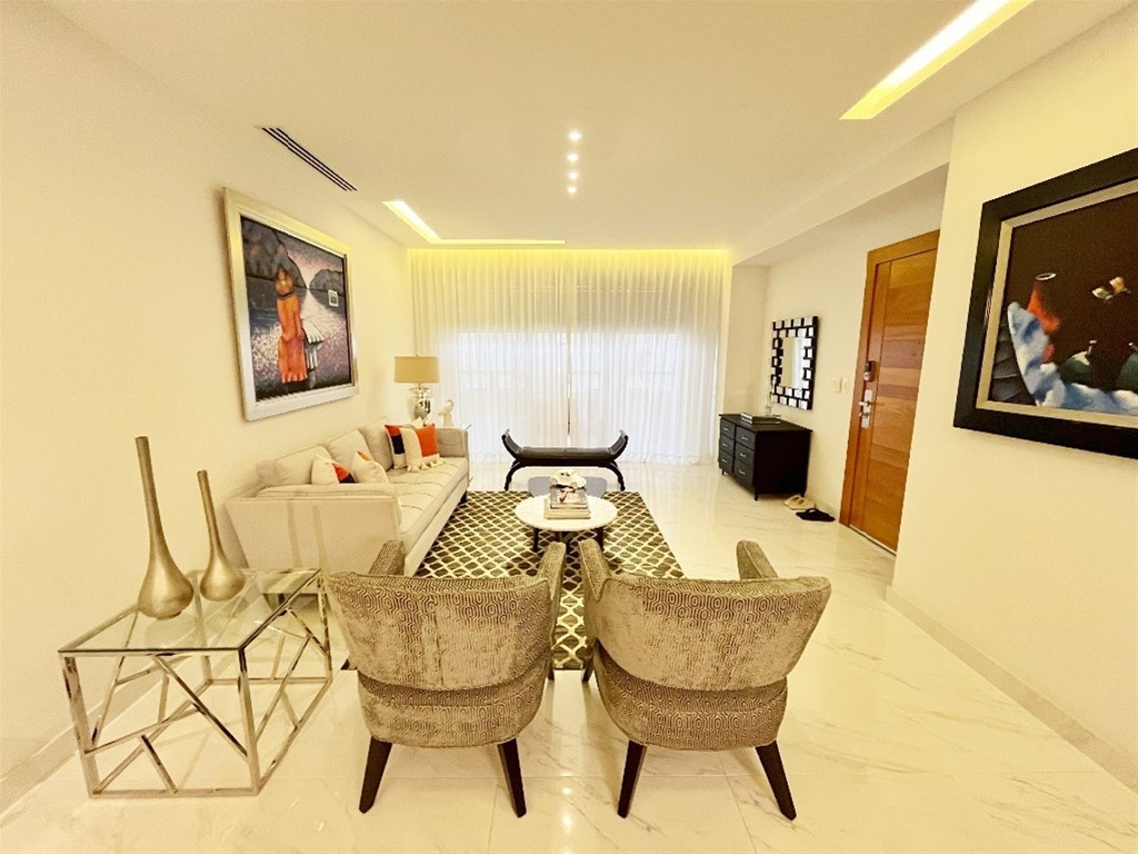 Hermoso apartamento en torre familiar con amplia terraza en una de las mejores zonas de Bella Vista: Apartamento: 180 mt2 de apto 122 mt2 de terraza 3 habitaciones c/u baño y W/C 2 medio baño Estudio Sala Comedor Cocina fría y caliente Area de servicio Cuarto de servicio 2 lockers uno en el apt (8mt2) Shutters en todas las ventanas Perma y toldos retractables Pre instalación de alarma y cámaras 2 parqueos paralelos Aire central 5 toneladas para areas sociales Aire acondicionado en cada habitación Escalera de emergencia Amenidades: Area social Gimnasio Piscina BBQ Lobby amueblado y climatizado 2 ascensores Planta full Mantenimiento: RD$ 15,000 Precio: US$ 495,000