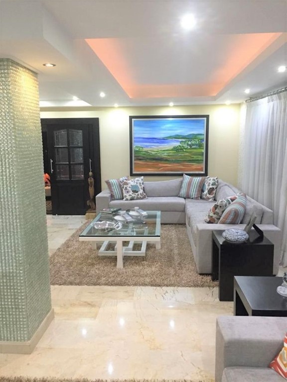 Amplio apartamento con Tres (3) habitaciones cada una con su baño, Tres (3) salas, estudio, Amplio y elegante comedor, amplia cocina, Cuarto de servicio con baño y closet.-, Área de lavado con gabinetes, Shuters en todas las ventanas, Elegante bañoAm para visitas, Puerta de entrada con cerradura de alta seguridad, Área para oficina, Closets en cada habitación en cedro, Un apto. (1) por piso con un hall al salir del Ascensor con seguridad para subir a cada piso, Cuatro (4) parqueos techados, Dos (2) Lockers, Lobby Se puede negociar todos los muebles.