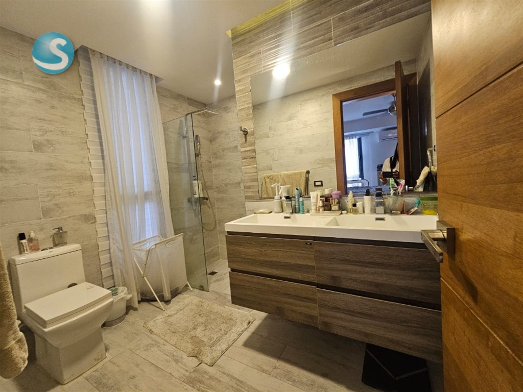 Este espacioso apartamento de 147 metros cuadrados está ubicado en el prestigioso sector de Bella Vista, en Santo Domingo de Guzmán. Consta de tres habitaciones bien iluminadas, dos baños modernos y dos espacios de parqueo. La sala y el comedor están diseñados para ofrecer comodidad y estilo, mientras que la cocina está equipada con todo lo necesario para el día a día. Además, cuenta con una terraza perfecta para relajarse, un área de lavado funcional y acceso a áreas sociales y gimnasio, ideales para el entretenimiento y el bienestar. Esta propiedad es perfecta para quienes buscan confort y conveniencia en la ciudad. Apartamento 156.63 m2 Terraza 147.34 m2 3 Habitaciones 2 Baños 2do Nivel 2 parqueos Torre de 17 pisos con 2 Bloques, cada bloque tiene 2 apartamentos por piso Área social con 3 jacuzzi, area bbq, salon de cine/reuniones, gimnasio equipado Precio de venta