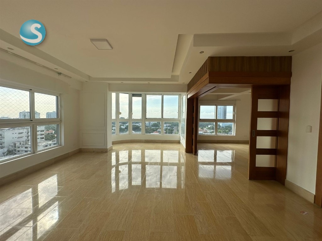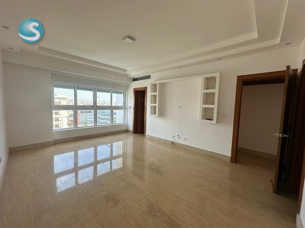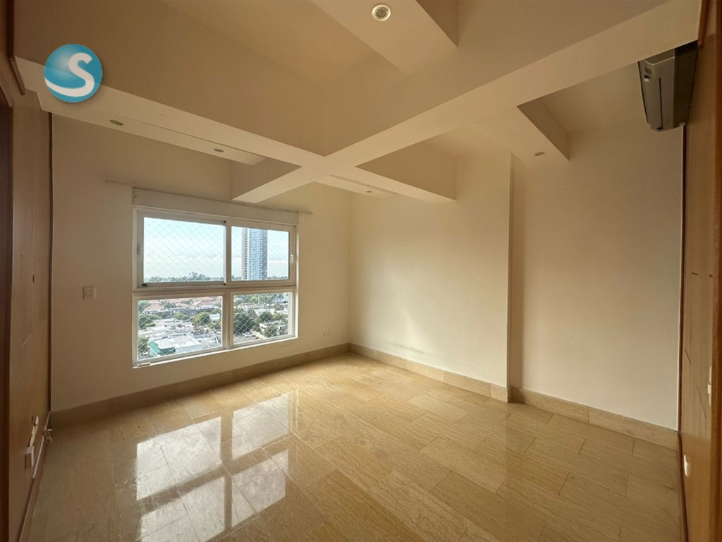 ALQUILER EN TORRE MODERNA UBICADA EN BELLA VISTA Características 250 mts 3 habitaciones con su baño y walk in clóset Medio baño de visita Sala Recibidor Family room Estudio Cocina Área de lavado Cuarto de servicio con su baño 3 parqueos paralelos Incluye : aire central , 1 aire acondicionado en estudio , shutters Características del residencial Uso residencial Planta full Gas común Locker Área de chofer Cancha de voleibol Salón multiusos Gimnasio Lobby climatizado Área de juegos 2 ascensores acceso controlado Precio de alquiler US$2,500 Informacion Ariana Estaba 829-929-4899