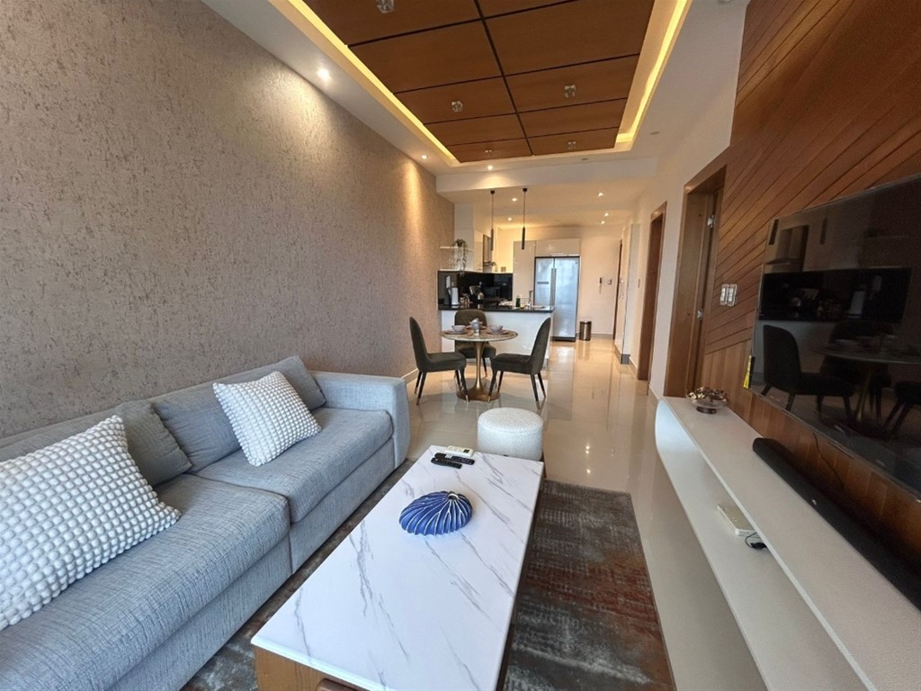 Bella Vista 1 Habitación con baño y WC 1 baño completo de visitas Sala/comedor Cocina Área de lavado Balcón 1 parqueo Piso 10 70m² Área social: -Piscina -Terraza destechada amueblada, con BBQ -Gimnasio totalmente equipado -Amplio salón de eventos amueblado y climatizado Alquiler amueblado: US$1,500