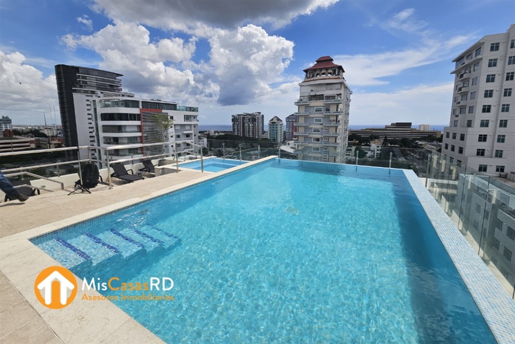 Apartamento en alquiler – Bella Vista Piso alto | 1 habitación | Línea blanca 68.50 m² 1 habitación 2 parqueos 2.5 baños Sala y comedor Cocina equipada Balcón con vista Cuarto de servicio Área de lavado Amenidades de la torre: Piscina Gimnasio Área de juegos para niños Zona BBQ Solarium / Terraza destechada Lobby amueblado Oficina administrativa US$1,300