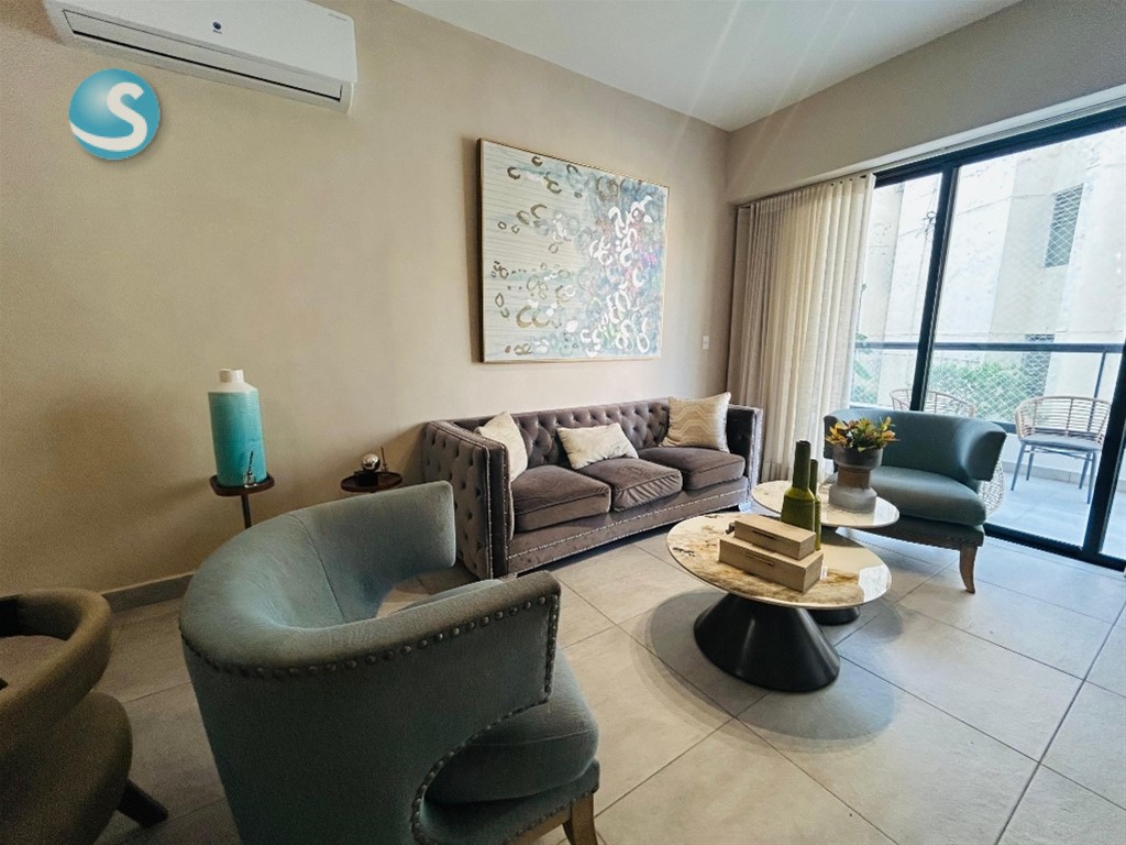 Se vende apartamento totalmente amueblado en Bella Vista •Piso 2 •117m2 •2 habitaciones •2.5 baños •Sala •Comedor •Cocina •Balcón •Área de lavado •Cuarto de servicio con su baño •2 parqueos paralelos Características de la torre: •Lobby de lujo •Piscina Infinity •GYM •Área de niños •Espectacular Cine •Seguridad 24 horas •1,500m2 de área social Precio de venta: US$260,000