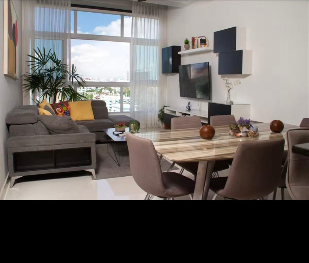 Apartamento amueblado en alquiler – Bella Vista | 97 m² | US$1,500 Ubicado en una zona residencial privilegiada, este moderno apartamento completamente amueblado ofrece comodidad, elegancia y fácil acceso a todo lo que necesitas. Características del apartamento: 2 habitaciones 2 baños Sala-comedor Cocina equipada con desayunador 1 parqueo techado Amenidades del edificio: Ascensor Lobby climatizado Piscina Gimnasio Áreas sociales Salón para eventos Terraza techada Planta eléctrica full Aire acondicionado tipo split Calentador Seguridad 24/7 con conserje y portón eléctrico Ideal para familias o parejas que buscan calidad de vida en una ubicación estratégica del Distrito Nacional. Contáctame para más información o agendar tu visita: 809-883-5154 Nicole Balbuena