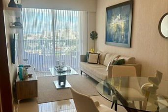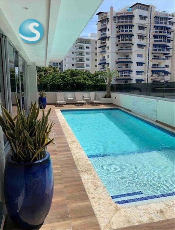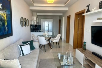 Apartamento en alquiler amueblado, ubicado en Bella Vista 67 mts. 9no. Piso 1 habitación 2 baños Sala Comedor Balcón Área de lavado Cocina Recibidor Un parqueo 1 ascensor de carga 2 ascensores Torre con amplias áreas sociales Piscina Terraza Lounge bar Área dé BBQ Área infantil Gimnasio Alquiler: US$1,100
