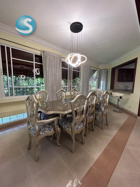 Bella Vista Residencial Jardines del Embajador Amplias areas verdes 230 mts 3 habitaciones 3.5 baños Sala Comedor Estudio Amplio balcon tipo terraza Cocina abierta Cuarto de servicio 1 parqueo destechado Varios parqueos de visitas 3er piso No ascensor Alquiler: US$1,400 (Mantenimiento incluido) Incluye los electrodomesticos.