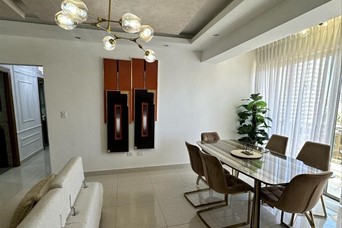 Alquiler de Apartamento Finamente Amueblado en Bella Vista Próximo a Down Town (SOLO CLIENTES DIRECTOS) Torre nueva Amueblado full Aires y TV en todas las instancias 2 habitaciones cada una con su baño y su walking closet -120 Metros Netos de Apartamento Sin Los Parqueos - area de lavado - cuarto de servicio con baño - baño de visita - cocina equipada - comedor - sala - piso 6 - 2 ascensores - planta de electricidad - 2 Parqueos - Terraza de área social Gim y piscina - 1800$ manteniento incluído