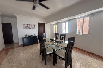VENDO APARTAMENTO CLÁSICO CON PISOS EN MARMOL, PISO ALTO CON VISTA DESPAJADA, TORRE FAMILIAR en BELLA VISTA. VENTA AMUEBLADO US$215,000 200 metros 3 habitaciones Walking clóset habitación principal 2.5 baños Balcón integrado con vista despejada Cocina cerrada Área de lavado Habitación de Servicio 2 parqueos paralelos 4 Aires acondicionados Calentador de gas Shutter- protección contra huracanes Puertas en Cedro y caoba Pisos de mármol