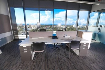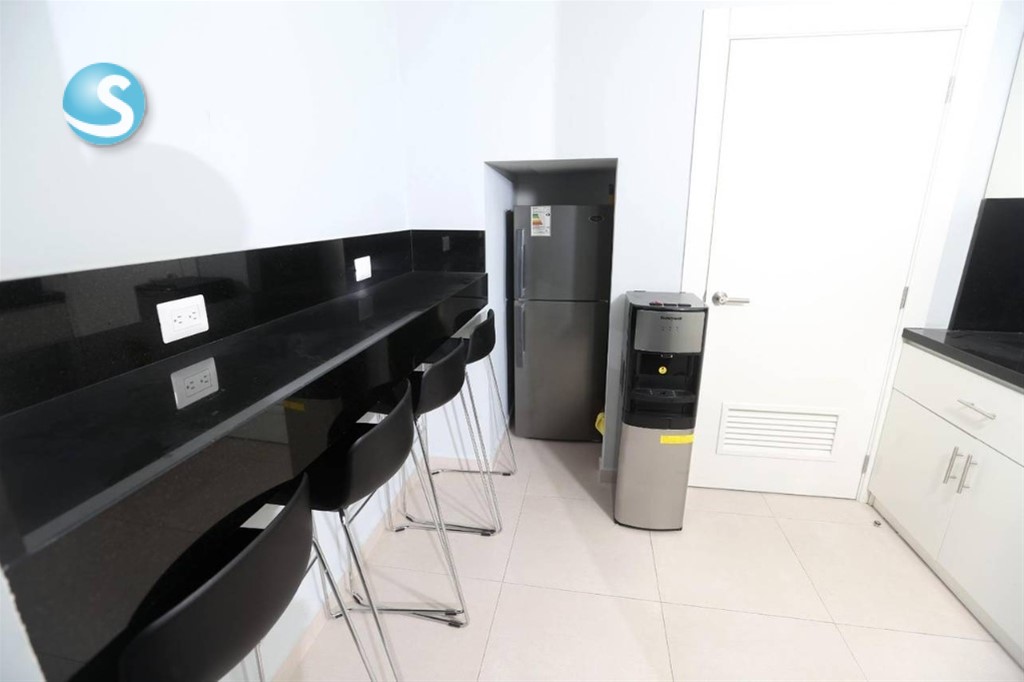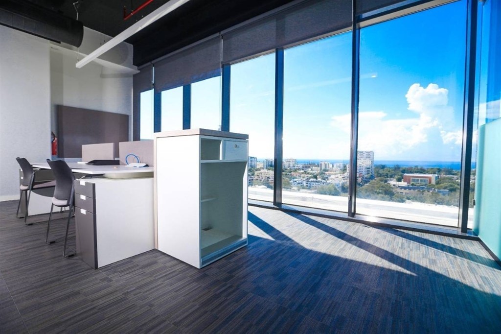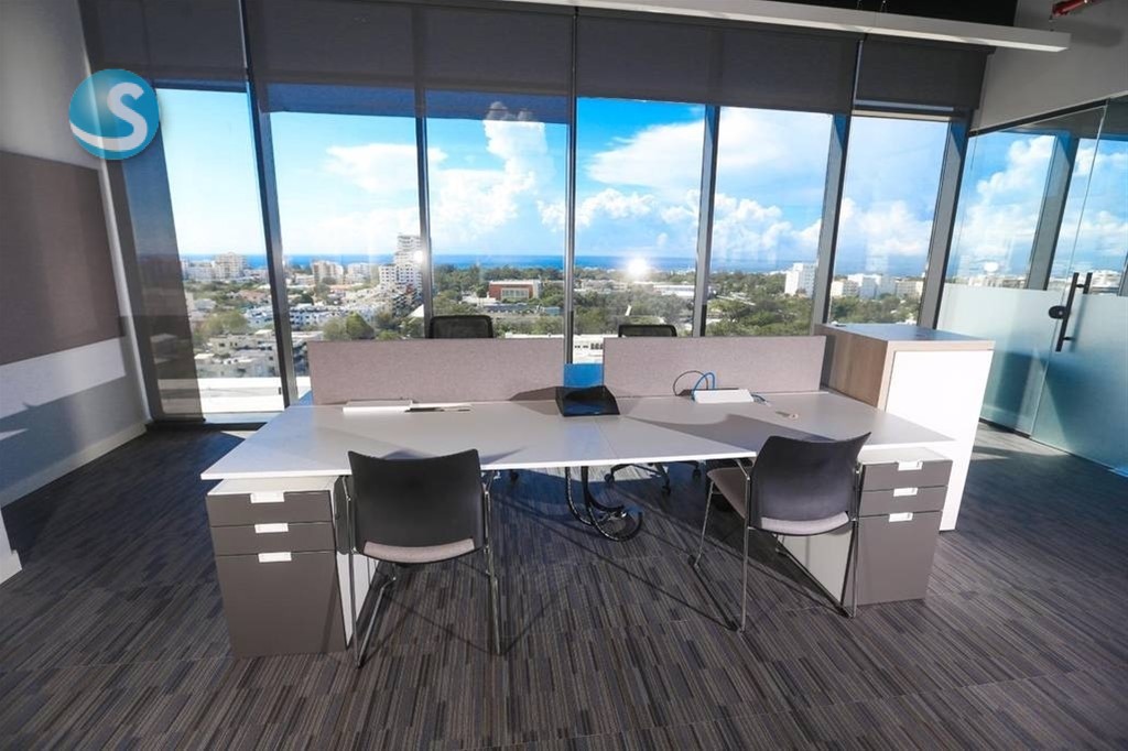 Ubicada en un nivel alto, con vista al mar, moderna La oficina está lista para ocuparla amueblada, pisos, techo, aires acondionados, salón de conferencia, oficinas, estaciones de trabajo abierto, dos baños, cocina-comedor dentro del local, Torre moderna de oficinas estratégicamente localizada en un sector de alto transito, cercana a zonas industriales y comerciales. De fácil acceso a las principales vías de la ciudad, permitiéndole llegar en minutos a cualquier punto de Santo Domingo. Otras Facilidades: Tecnología de punta en telecomunicaciones y sistemas de prevención Sistema de información soportado por fibra óptica y nodos de internet y telefonía Conexiones de internet y telefonía disponibles de varios proveedores Cámaras de seguridad (CCTV) y centro de monitoreo Rociadores, detectores de humo, escaleras presurizadas Diseñado pensando en la seguridad y mejora en los costos de mantenimiento Muros cortinas con cámara de aire y vidrios templados (reducen la transmisión del calor) Enfriamiento a través de chillers de agua fría eficientes Plantas de emergencias. #2679