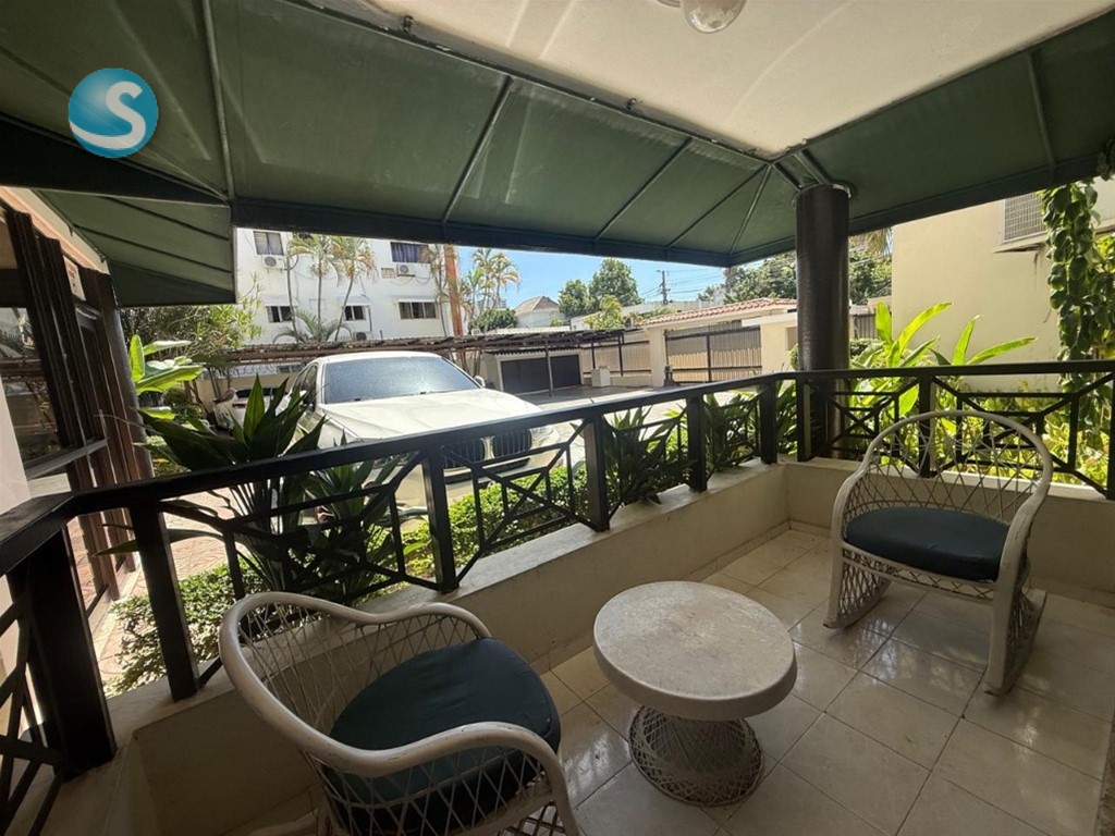 Rento apto amueblado en primer nivel. Residencial clásico en el exclusivo sector de Bella Vista Sur, a una esquina del parque del Mirador Metraje: 112m 2 Habitaciones 1 Baño Sala Comedor Balcón amplio Cocina abierta Área de Lavado Habitación de Serv con su baño 1 Parqueo Ascensor Mucha área verde Precio de Renta: US$900 Mantenimiento Incluído