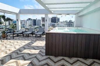 Apartamento en alquiler en Bella Vista. Torre nueva y moderna. Con todas las facilidades y servicios a pocos minutos. Especificaciones generales: · 2 habitaciones y 2 baños · Habitación Principal W/Closet y su Baño · Habitación Secundaria con clóset y baño · Sala-comedor · Cocina modular cerrada · Arena de lavado · Balcón con vista a la ciudad · 2 parqueos techados, amplios y paralelos Especificaciones de acabados: · Pisos en porcelanato · Cocina modular · Madera preciosa · Proyecto cerrado con portón eléctrico · Lobby amueblado y climatizado · Ascensor capacidad para 14 personas · Planta full · Cisterna Pozo de agua · Intercom · Sistema de circuito cerrado · Gas común conmigo contador independiente · Equipo contra incendio · Escalera de emergencia interna AMENIDADES: · Seguridad 24/7 · Gimnasio equipado y climatizado · Área de juegos Infantil · Picuzzi · Salón multi uso amueblado, confortable y climatizado · Amplia terraza destechada · Zona de BBQ Puntos de interés en la zona · Downtown Center · Plaza Lama de la 27 · Centro Médico Richardson Cruz (CMRC) · Parque Mirador Sur · Carol Morgan School · Almacenes Unidos S.A.S