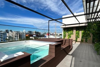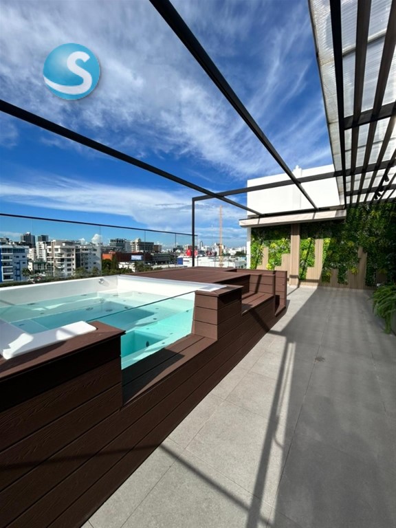 Se vende amplio penthouse de tres niveles a estrenar en Bella Vista •315 m2 •2 Parqueos paralelos techados Distribución por piso : Nivel 8: •Tres habitaciones cada una con su baño, la principal con dos walking clóset y balcón privado Nivel 9: •Recepción •Sala •Comedor •Estudio •Cocina •Balcón •Cocina •Área de lavado •Habitación de servicio Nivel 10: •Terraza privada techada y semi destechada de 68 metros con •Picuzzi •Lounge bar •BBQ Características de la Torre: •Lobby amueblado •Gym •Área de niños •Terraza techada con mini Bar Picuzzi •Terraza destechada amueblada •Portón Electrónico •Ascensor •Planta Eléctrica •Intercom •Seguridad las 24 horas Precio de venta: US$550,000