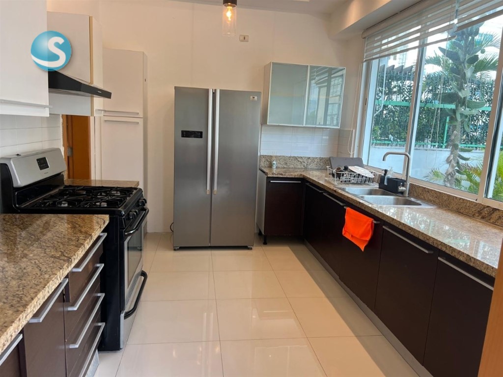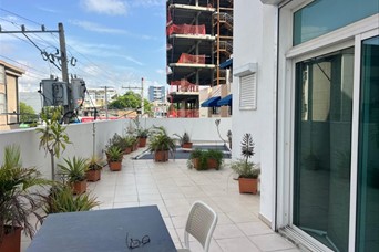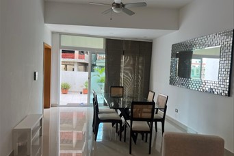 Alquiler y venta amueblado en Bella Vista Piso 3 240 mt 2 habitaciones 2 baños Sala Comedor Cocina Terraza de 120 mts Área de lavado Habitación de servicio 2 parqueos techados Escalera de emergencia Precio de venta US$270,000 Precio de alquiler US$1,500 ARAC. A.