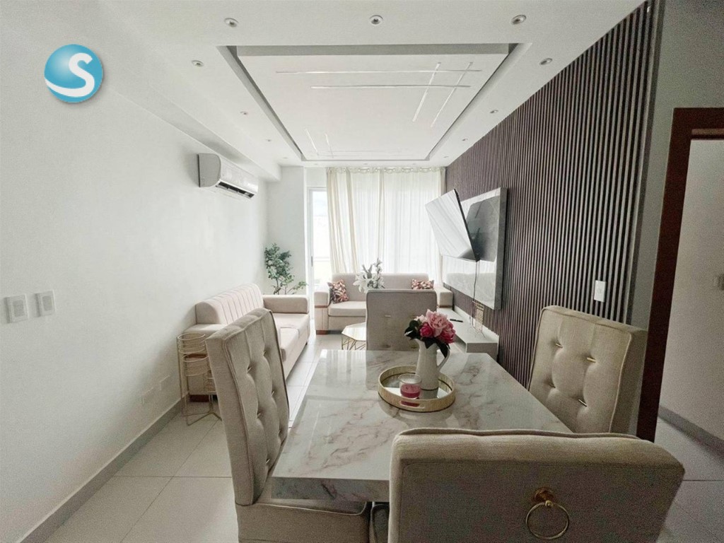 RENTA amueblada en exclusiva torre ubicada en Bella Vista Características -Totalmente amueblado -2 habitaciones -1 baño -Sala -Cocina con desayunador -Balcón -Área de lavado -1 parqueo techado Características de la Torre: -Lobby amueblado y climatizado -3 Ascensores -Gimnasio -Piscina con BBQ y bar -Salón de eventos -Área de Niños -Planta Eléctrica Full -Gas común -Intercom -Portero -Portón eléctrico -Seguridad 24 Horas Precio de Alquiler: US$ 1,400 (Mantenimiento incluido) Gab. E. Leyni Pujols 809-713-7249