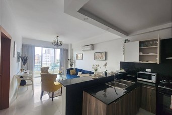 Alquiler de piso alto ubicado en Bella Vista Apto nivel 7 1 Hab. WC 2 baños completos Sala Amueblada Sofá Cama Desayunador Cocina Equipada completa Área de Lavado, Lavadora secadora Calentador Balcón amueblado 1 parqueo Área neta 90 mt2 Totalmente Amueblado Amenidades de la torre Seguridad y conserjería 24h Lobby climatizado 2 Ascensores Gym moderno completo Área de bbq Piscina vista al mar Salón de evento rooftop Piso 10 Alquiler US$1,150. mant. Incluido Informacion Aracelis Alvarado 809-763-2932