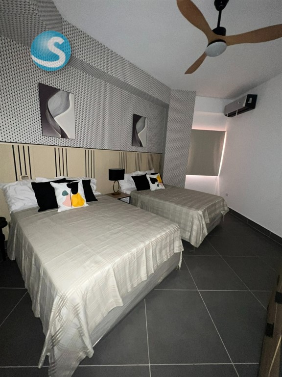 Apartamento en Alquiler Amueblado BELLA VISTA SUR USD 2,600.00 incluye el internet (Mantenimiento incluido) CARACTERÍSTICAS DEL APARTAMENTO: • 145 m2 distribuidos en dos habitaciones con walking closets y baños cada una. Apto para estrenar!! Medio baño de visita y balcón terraza precioso! • 2 parqueos techados paralelos • Cocina con desayunador 100% equipada • Habitación de servicio con baño • Área de lavado • Techos en sheetrock y aires en todas las áreas CARACTERÍSTICAS DEL EDIFICIO: • Lobby • Intercom • 2 ascensores • Área social con vista al mar y BBQ más horno de pizza y paella • Terraza con TV cinema • Piscina con hermosa vista al mar infinito • Gimnasio equipado full • Área infantil única! • Salón multiusos Lobby de lujo enter otros