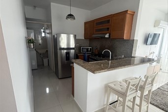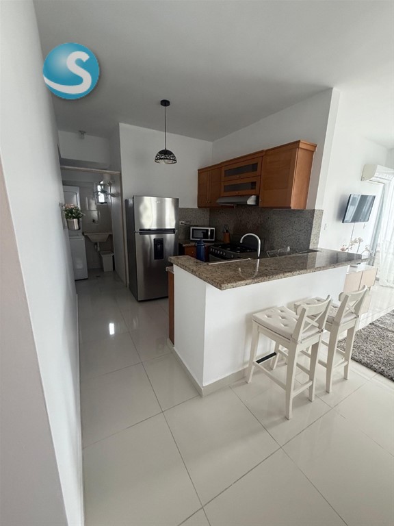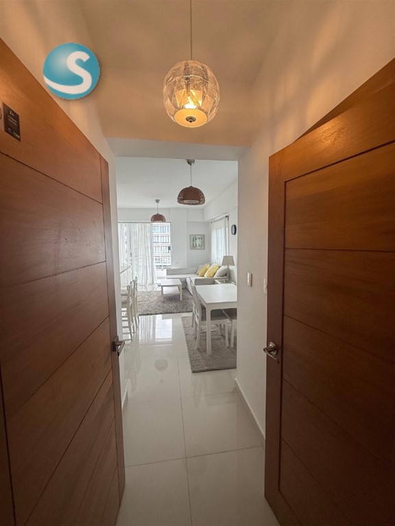 Bella vista. - 65 metros - Piso 4 - 1/2 baño de visita. - 1 hab con closet de pared y baño. - Sala - comedor - Cocina - Area de lavado - Balcón frontal. Descripción de la torre: - Lobby amueblado y climatizado. - Planta electrica full. - Area social en el techo (área destechada y salon multiusos) - Bomba sumergible. - Gas común. Precio Amueblado: US$850