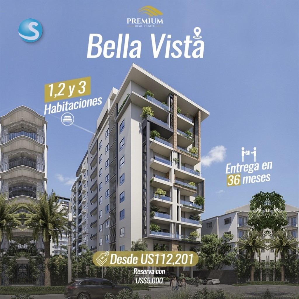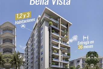 En el corazón de Bella Vista, nace una nueva forma de vivir. Elegancia, ubicación y amenidades diseñadas para elevar tu estilo de vida. Precios desde: US$112,201 Reserva con: US$5,000 Entrega en: 36 meses ÁREAS DE ESPARCIMIENTO SOCIAL Gimnasio completamente equipado Sauna Lobby de diseño Rooftop con piscina finamente amueblada Piscina climatizada con terraza Mini Soccer Cigar Lounge Área infantil con enfoque en seguridad y confort Baños independientes para la zona de gimnasio y sauna Área para choferes, oficina administrativa y opción de lockers privados por apartamento CARACTERÍSTICAS DE LOS APARTAMENTOS 1, 2 y 3 Habitaciones 1, 2, 2.5, 3.5 y 4.5 baños Desde 39 m² hasta 142 m² Sala Comedor Cocina Estudio Sala de estar 1 y 2 parqueos