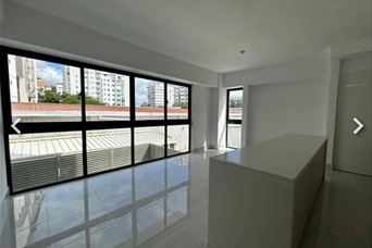 Venta en moderna torre de Bella Vista Piso 2 87 mts 2 habitaciones 2.5 baños Sala Comedor Cocina Balcón Área de lavado Habitación de servicio 1 parqueo techado Amenidades y características de la torre Portón eléctrico Ascensores Luz 24 hrs Cámaras de seguridad Planta full Gimnasio Piscina Salón Multiuso Lobby climatizado Precio de venta US$215,000
