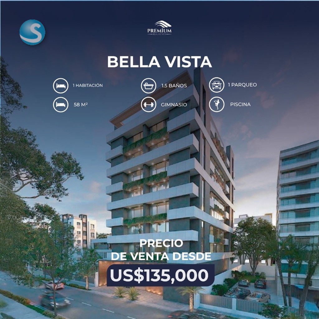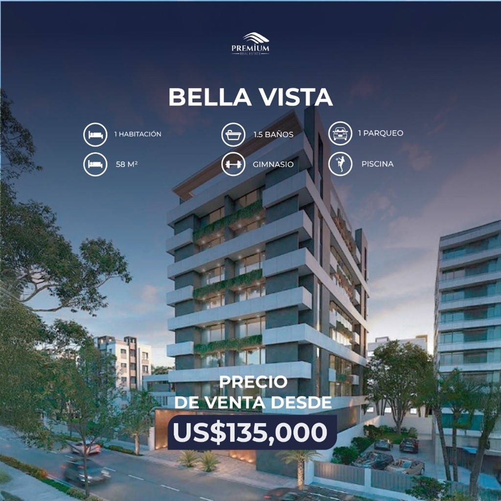 Bella vista Nuevo a estrenar Últimas unidades disponibles. 58 metros Nivel 2 1 habitación 1.5 baños Sala Comedor Cocina Área de lavado 1 parqueo Gym Piscina Salón multiuso Terraza techada y despechada. Lobby climatizado y amueblado. 2 ascensores Seguridad 24 horas Precio de venta desde Us 135,000 disponibilidad pisos altos