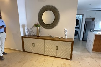 Atractivo apartamento amueblado para alquiler en una zona central de Santo Domingo. Distribuido en 2 habitaciones , 2 baños completos y 1 medio baño, ofrece comodidad para familias o profesionales que buscan conveniencia y pronta disponibilidad. El inmueble se entrega con acabados de porcelanato y madera preciosa, marco de aluminio y acabado en yeso, combinando durabilidad con estilo moderno. Cuenta con 2 parqueos y se ubica en un edificio con acceso cómodo y entorno residencial. Detalles clave 2 habitaciones 2 baños completos 1 medio baño 2 parqueos 1 Ascensor Balcón integrado Totalmente amueblado. Aceptan caninos. Acabados y características Porcelanato de alta durabilidad Madera preciosa de calidad Aluminio en perfiles Yeso, acabados lisos Arisleidy Santos REMAX Metropolitana +1 (809)-402-7944