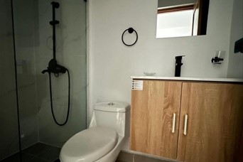 Moderno apartamento en alquiler línea blanca en Bella Vista Piso 4 100 MTS 2 habitaciones 2.5 baños Sala Comedor Desayunador Cocina Locker Balcón integrado Área de lavado Habitación de servicio 2 parqueos techados Escalera de emergencia Amenidades y características de la torre Portón eléctrico 2 ascensores Luz 24 hrs Cámaras de seguridad Planta full Área de juegos Gimnasio Picuzzi Salón Multiuso Lobby climatizado Terraza común Gas común Pozo Cisterna Conserje Precio de alquiler US$1,300