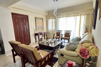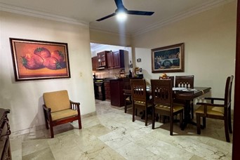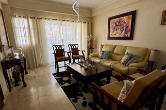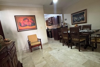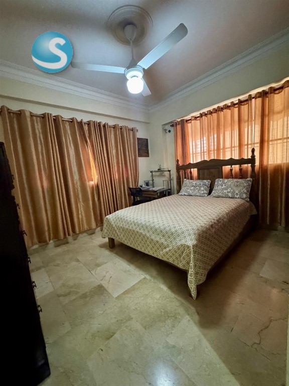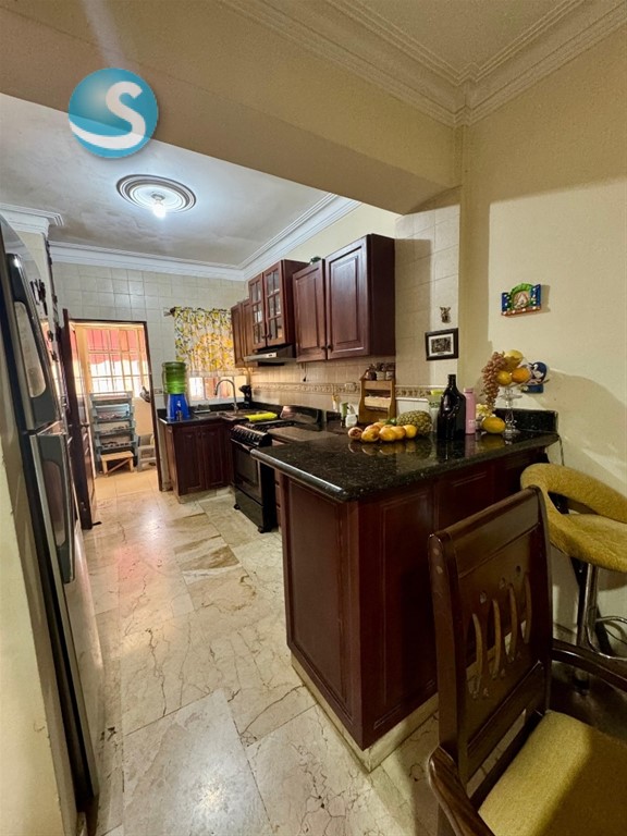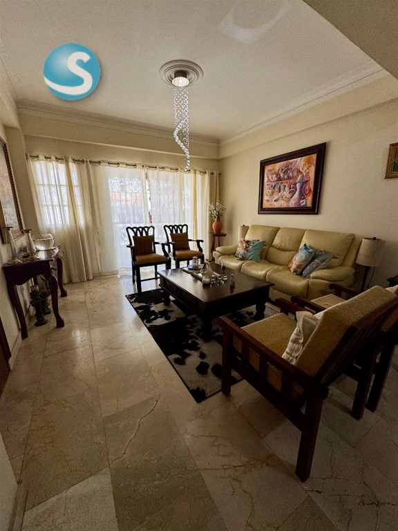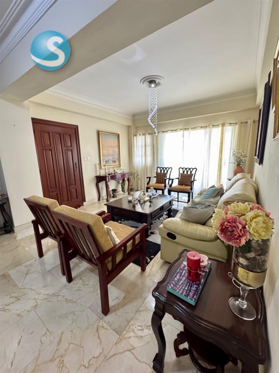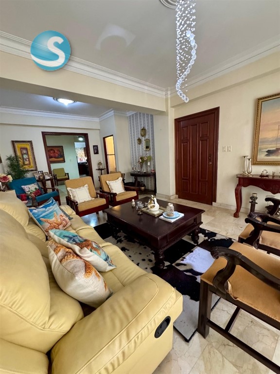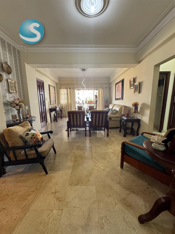 ? 3 habitaciones Sala y comedor independientes Balcón frontal Cocina amplia con topes de granito Área de lavado + cuarto de servicio Baño en la habitación principal con 2 vestidores Baño para habitaciones secundarias y baño de visita Terminación en caoba + pisos en mármol El edificio cuenta con: Ascensor 2 parqueos Planta full Gas común con medidor Mantenimiento: RD$6,600 + consumo de gas