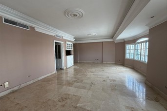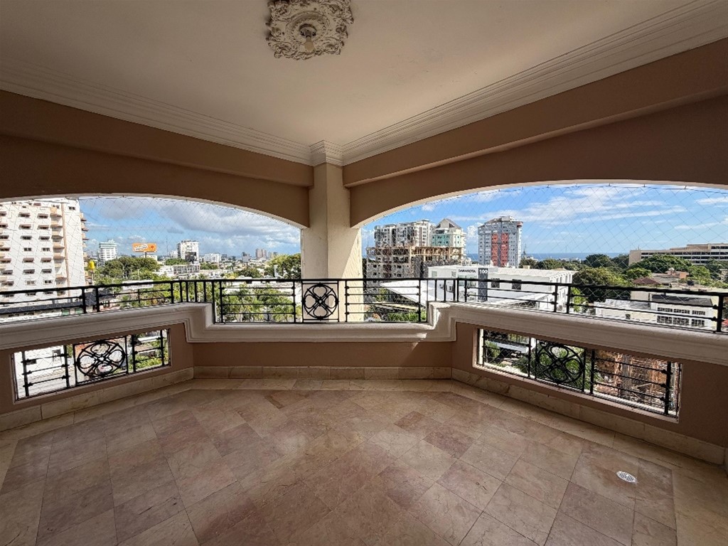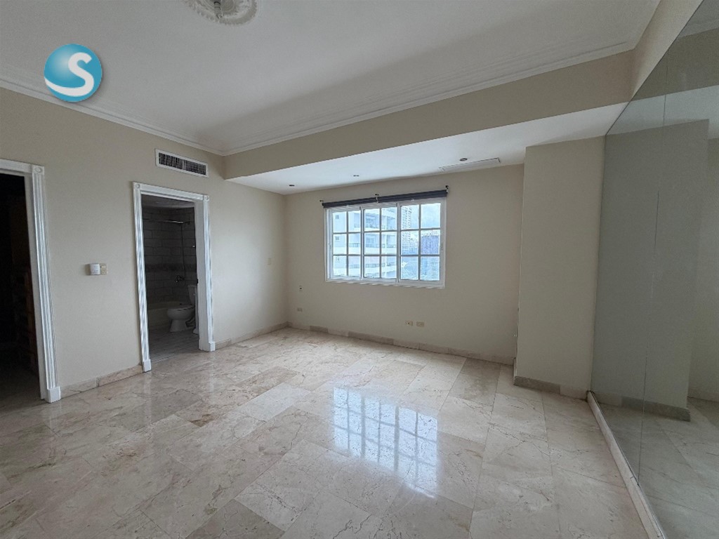 Bella Vista; amplio Apartamento con vista al Mar 296.60 metros cuadrados Nivel 6 • Recibidor • Sala • Amplio balcón • Comedor • Medio baño • Cocina (con gabinetes modulares) • Oficina de estar • Closet de ropa blanca • Calentador de agua en línea (instantáneo) • 3 habitaciones con sus baños cada uno y walk-in closets en dos de ellas, closet en la otra) • Jacuzzi en el baño principal • Área de lavado • Habitación de servicio con baño • Pisos en mármol • Locker • Terminación de primera en mármol y caoba. Incluye 4 aires acondicionados localizados en los dormitorios y la oficina Además consta de: • Lobby • 2 parqueos techados • 2 ascensores • 2 Plantas eléctricas • Ducto de basura • Cisterna de agua • Cuarto de 2 bombas de agua • Gimnasio • Salón multi-uso • Gas común • Portón eléctrico del parqueo • Escaleras de emergencia • Cámaras de vigilancia • Sistema contra incendio No se aceptan mascotas ni Airbnb Precio de Alquiler US$2,000