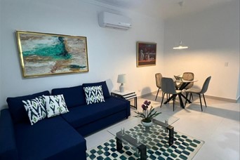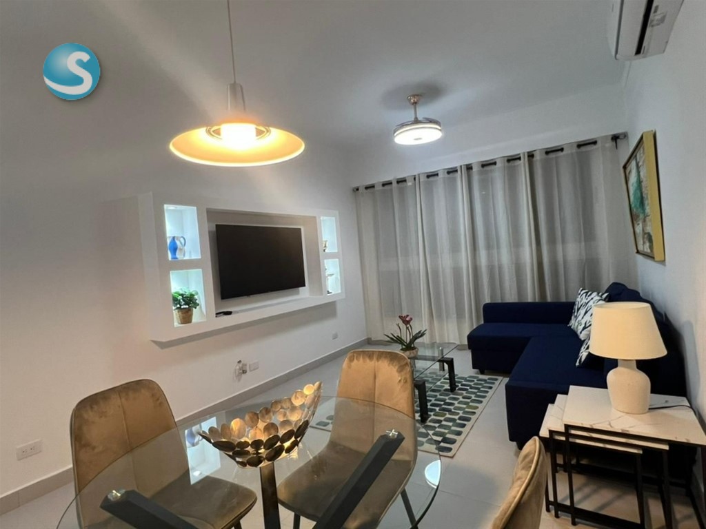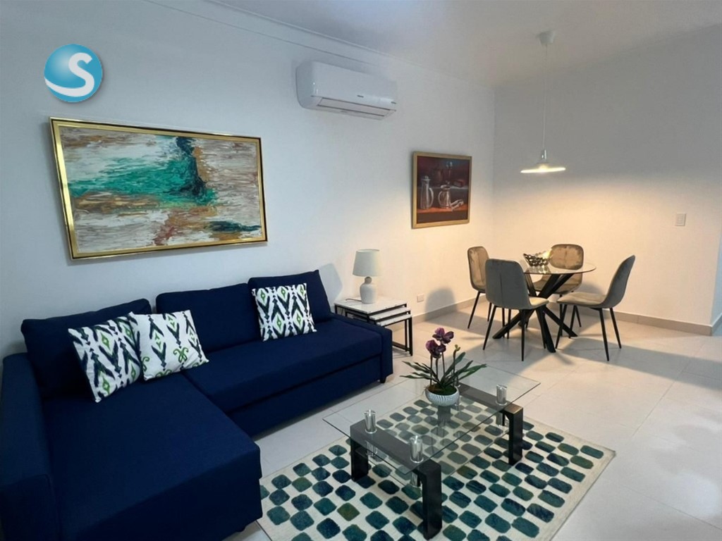 SOLO CLIENTES DIRECTOS Alquiler apartamento amueblado – Bella Vista Villa Palmeras XXII, calle Furci Pichardo #8, a una cuadra del Downtown Mall Center. - 74 m² - 1 habitación, 2 baños completos - Sala-comedor, cocina equipada - Área de lavado con lavadora-secadora - Aire acondicionado en sala y habitación - Parqueo privado - Amueblado, incluye TV 55” y sofá-cama Amenidades: gimnasio, piscina, área infantil, 3 ascensores. -Pet Friendly Renta mensual: US$1,250 mensuales (mantenimiento incluido).