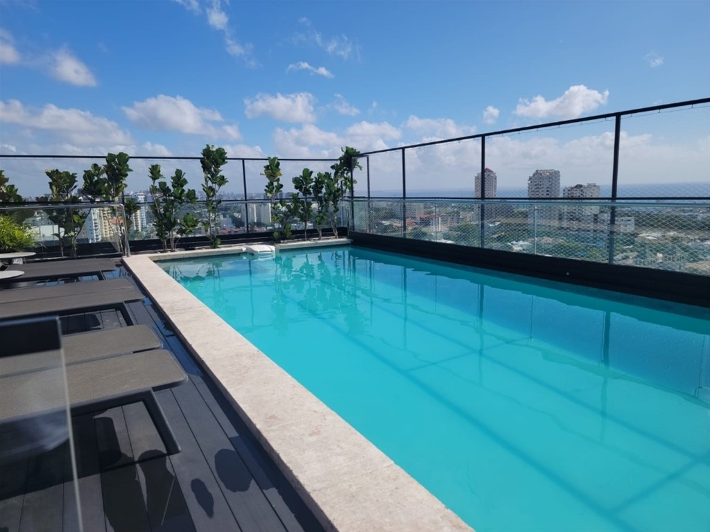 RT Nuevo a estrenar, este apartamento de 101 m² ofrece un confort moderno en una ubicación privilegiada de Bella Vista, Santo Domingo. Disfruta de una distribución funcional y acabados de alto nivel que combinan porcelanato y melamina La propiedad se encuentra en un piso alto, brindando una vista al mar que realza la experiencia de vivir en la ciudad. Con 2 habitaciones, 2 baños completos y 1 medio baño, este apartamento cuenta con 2 parqueos y una cocina integrada que favorece la vida diaria y el entretenimiento. Ideal para quienes buscan comodidad, seguridad y proximidad a servicios en una zona consolidada de Santo Domingo. Características 2 Piscina Gimnasio area de niños area social 2 ascensores lobby parque techado balcón