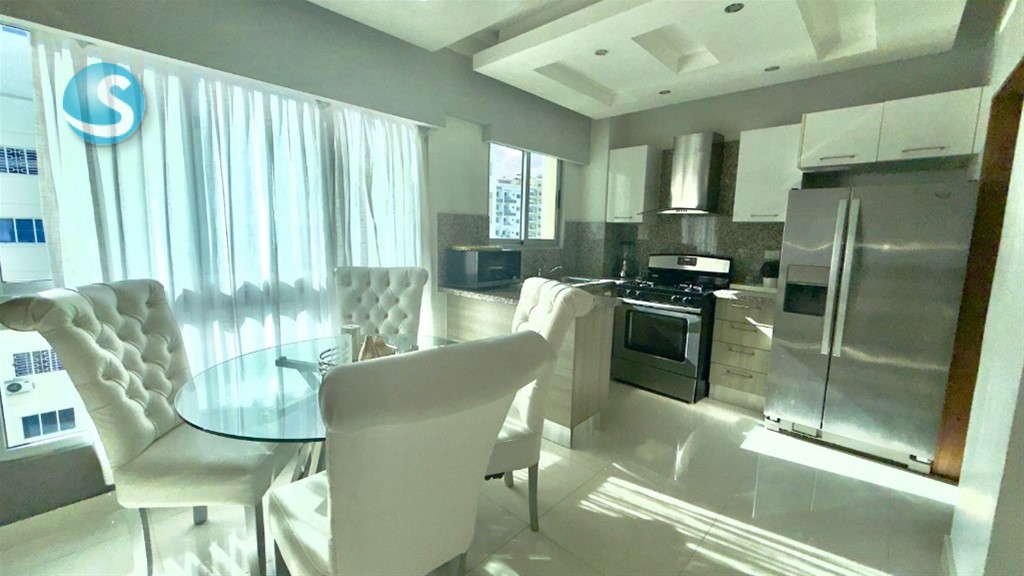 Apartamento amueblado - Dos habitaciones - 2 baños - Sala y comedor - Área de lavado - Un parqueo Características de la torre y ubicación: La torre cuenta con salón de eventos y ascensor. Está ubicada en una zona céntrica de Bella Vista, con fácil acceso a gimnasios, centros comerciales, colegios e iglesias, lo que la convierte en una excelente opción para vivir con comodidad y conveniencia. PARA MAS INFORMACIÓN: Arisleidy Santos REMAX Metropolitana +1 (809)-402-7944