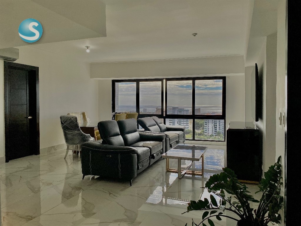 Bella Vista | Venta US$290,000 170 m² | Vista al mar Agente: Ana Castillo Cell:(809) 906-3126 Espectacular apartamento con ventanales de piso a techo que regalan una impresionante vista al mar, ubicado en un nivel alto que garantiza privacidad, frescura e iluminación natural durante todo el día. Distribución: • Recibidor • Amplia sala • Comedor • Cocina funcional • 2 habitaciones • 2.5 baños • Área de lavado • No habitación de servicio • 2 parqueos • Shutters en todas las ventanas Amenidades del edificio: • Lobby • Ascensor • Seguridad 24/7 • Sistema de cámaras • Pozo y cisterna • Piscina • Gimnasio • Salón social • Terraza • Área de BBQ Una propiedad que combina ubicación privilegiada, vistas incomparables y comodidad, perfecta para vivir o invertir en una de las zonas más cotizadas de la ciudad.